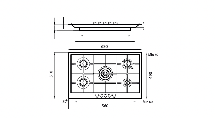 – 4 brûleurs à Gaz /1 brûleur WOK