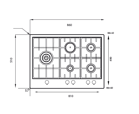 – 4 brûleurs à Gaz /1 brûleur WOK